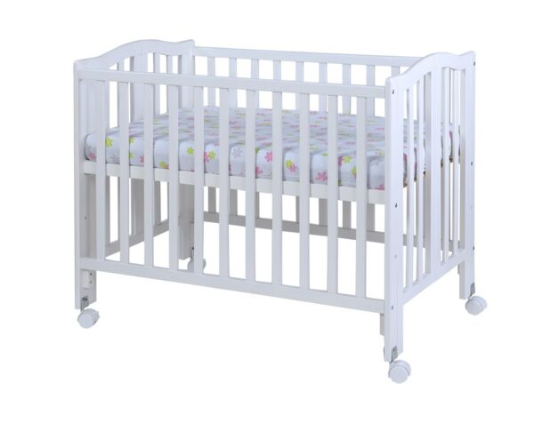 מיטת תינוק בגודל 100 ס"מ מעץ 'הלל' עם דופן עולה/יורדת – לבן סופר בייבי